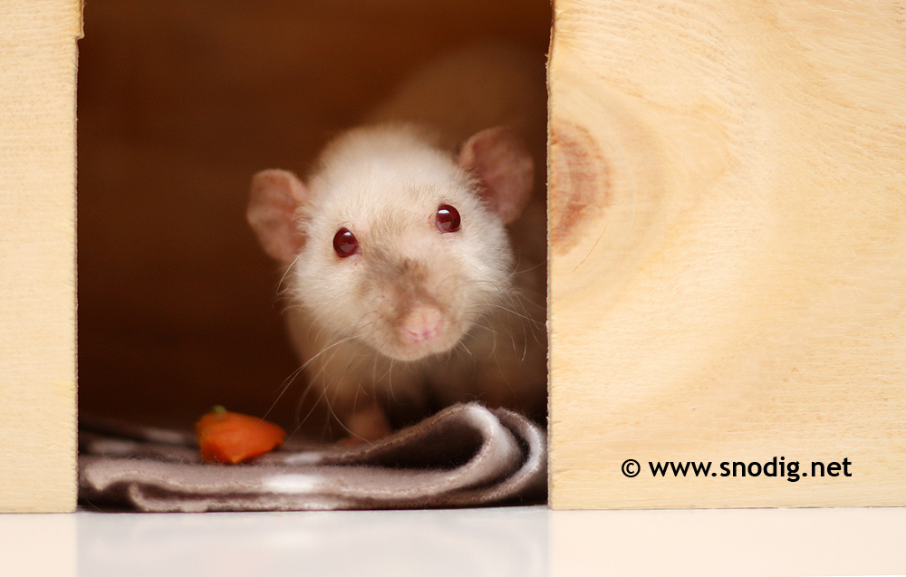 Camomille kom til oss i slutten av november 2007, da hennes eier, Erica, ikke kunne ha rotter lengre. Erica er oppdretteren til Jess. Camomille var en stor, stille rotte, hun kunne sitte stille lenge ad gangen. NÄr det var utetid var hun nysgjerrig og hoppet rundt over alt, men hun bar preg av Ä vÊre eldre, sÄ det gikk ikke sÄ fort som med de andre. Etter hvert oppdaget vi at hun sÄ dÄrlig (noe som er vanlig for rÞdÞyde rotter), vi hadde noen triste episoder hvor Camomille bet oss. Men det var enkelt Ä bare la vÊre Ä vifte med fingrene foran ansiktet hennes, sÄ ble vi ikke bitt lengre. Camomille og FrÞydis fikk et ganske spesielt bÄnd, nÞdvendigheten av at FrÞydis tilpasset seg Camomille var pÄkrevd og det gikk veldig bra.